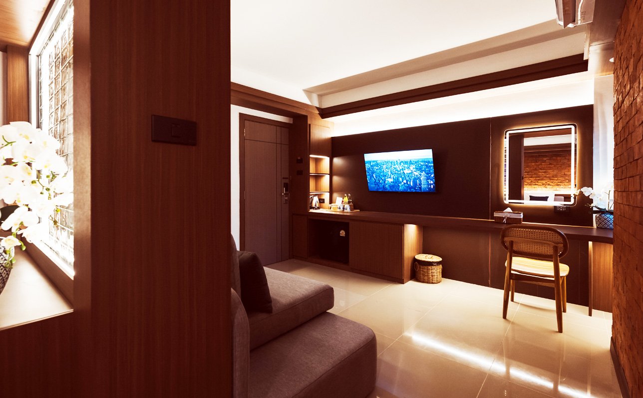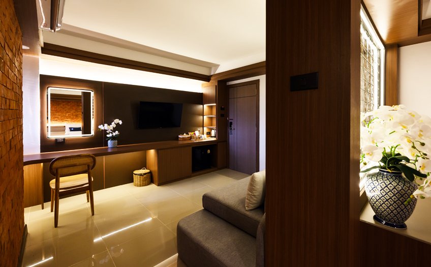 Luxurious furniture in both the spacious living room and the comfortable bedroom, offer up to 3 persons (2 adults and 1 child) enough space to enjoy their stay in Phitsanulok. A Minibar, LED TV, Electric kettle and our unique LED Lighted mirrors complete the perfect amenities setup for any stay.