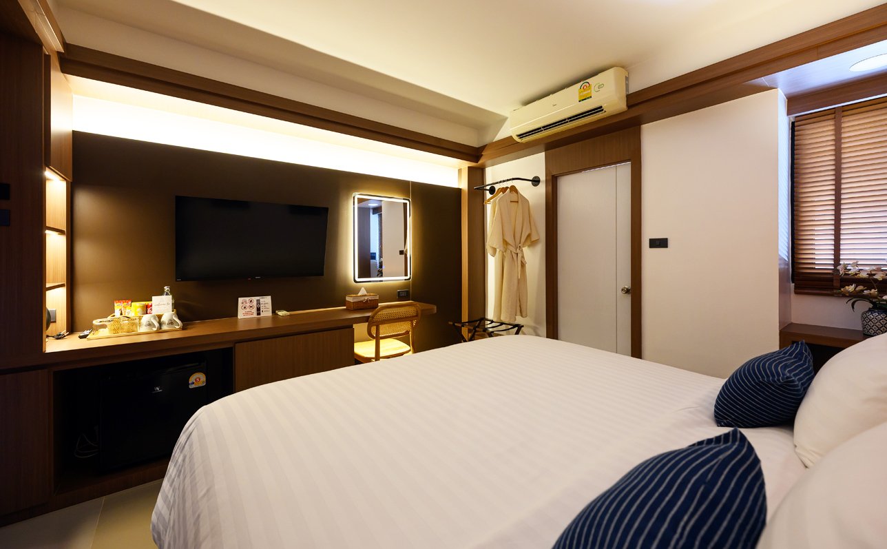 Luxurious furniture in the efficiently set-up superior rooms, offer up to 2 guests enough space to enjoy their stay in Phitsanulok. A Minibar, LED TV, Electric kettle and our unique LED Lighted mirrors complete the perfect amenities setup for any stay.